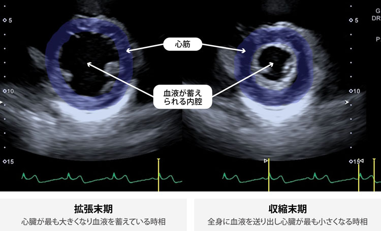 また、心臓は肺と全身に血液を送り出すポンプですので、心臓の機能が落ちると肺や全身に水分(血液)が溜まり、むくみや息切れを起こすことがあります。これらに対しエコーは低侵襲に、リアルタイムで心臓の動きや機能を見ることができる唯一の画像検査です。健診や手術前の心機能評価で、偶発的に心房中隔欠損など先天性疾患を見つける場合もあり、身近に行われている検査でもあります。