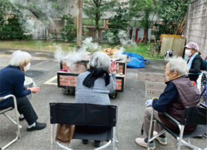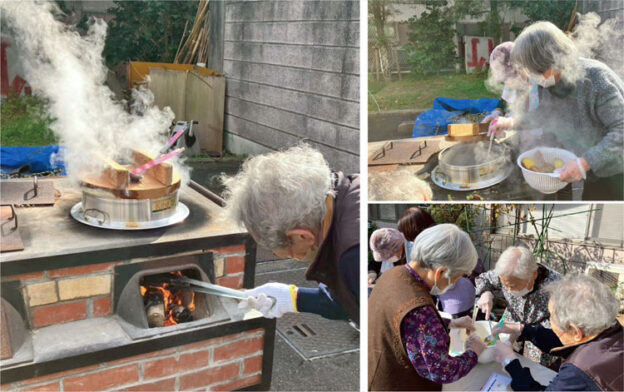 屋外でおくどさん(竈門)を使ったおやつ作りを行いました
