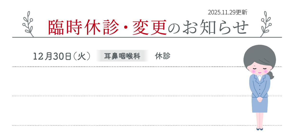 - 氏名、住所、電話番号、保険証の内容等に変更があった際は、受付にお申し出ください。