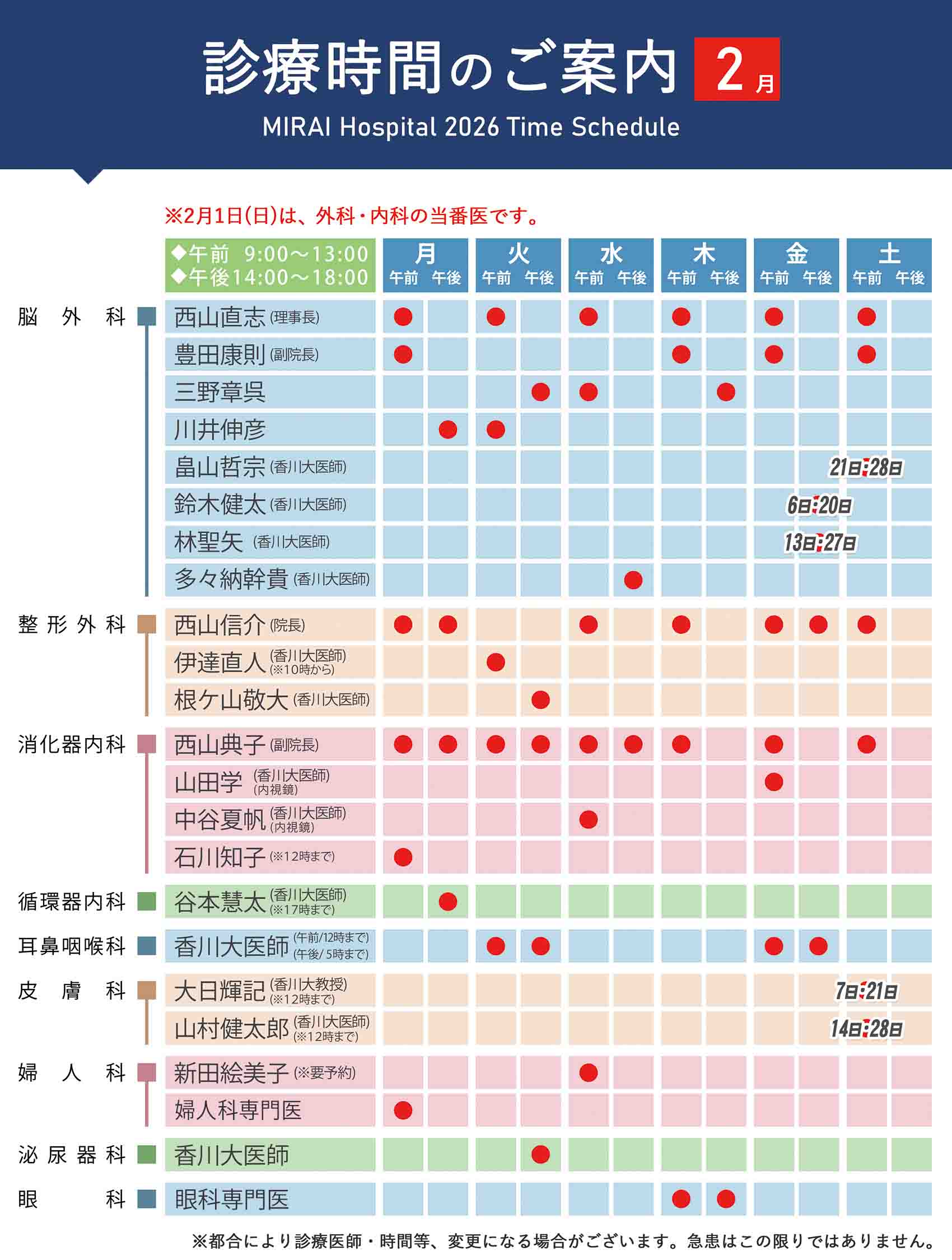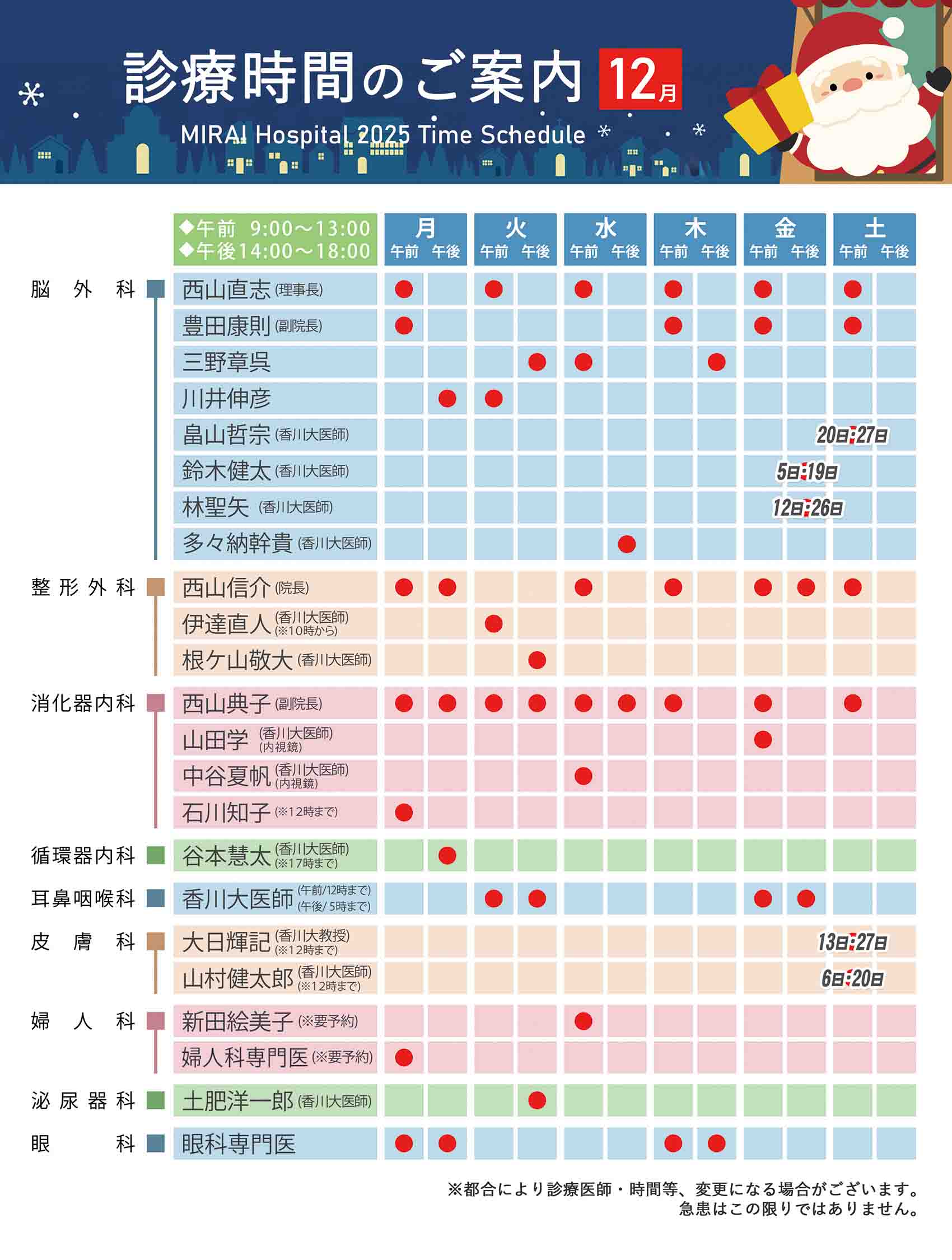 ※急患や検査結果等により、診察の順番が前後することがございます。ご了承ください。