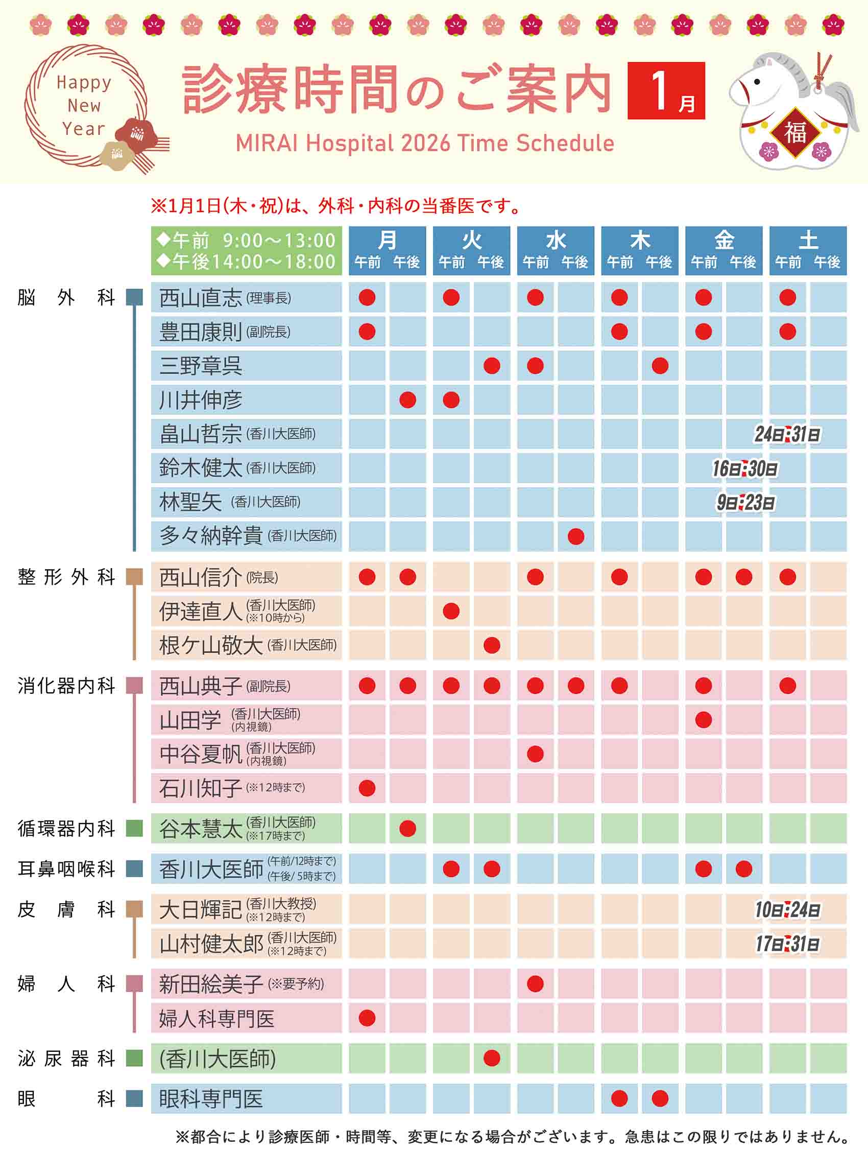 ※急患や検査結果等により、診察の順番が前後することがございます。ご了承ください。